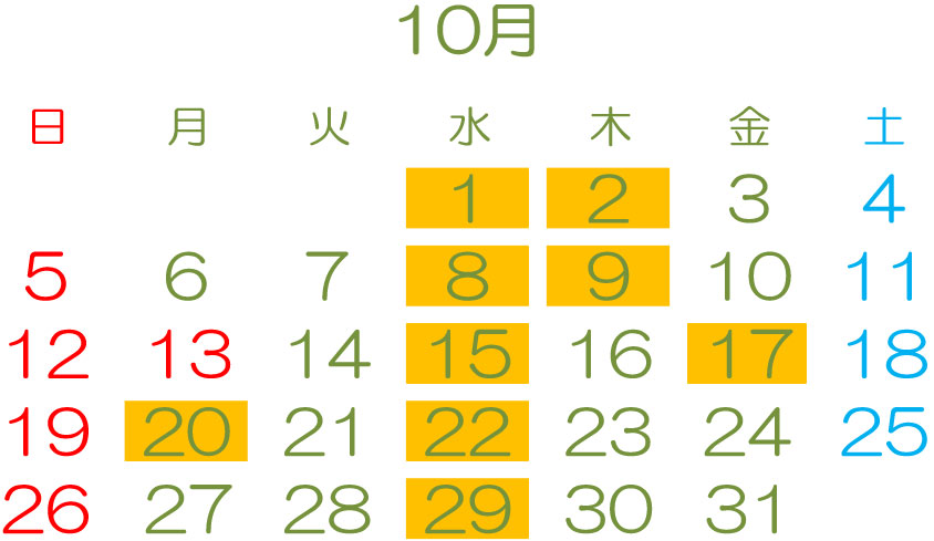 毎週水曜が定休日の他に、10月は2日(木)・9日(木)・17日(金)・20日(月)がお休みになります。セミナー(アルビオン勉強会)によりお休みが変則的になり、お客様にはご迷惑をおかけしますが、よろしくおねがいいたします! LINE会員様向...(25/09/30)