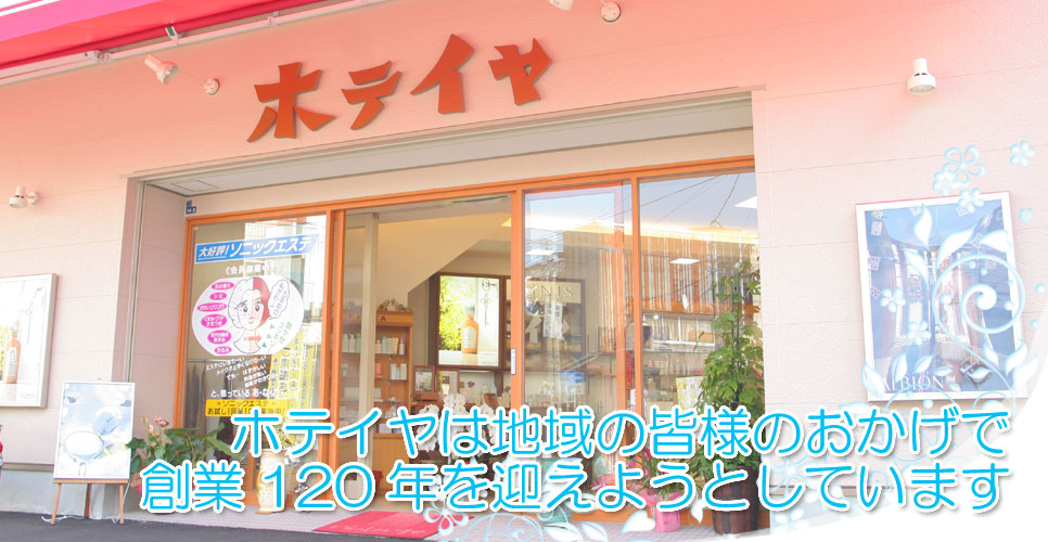 ホテイヤは地域の皆様のおかげで創業120年を迎えようとしています。 「ホテイヤに行ったら必ずキレイになれる」をモットーにスタッフ一同、日々勉強を重ねてお客様に満足していただけるよう頑張っております。どうぞ思い切ってホテイヤのドアを開けてみてください。